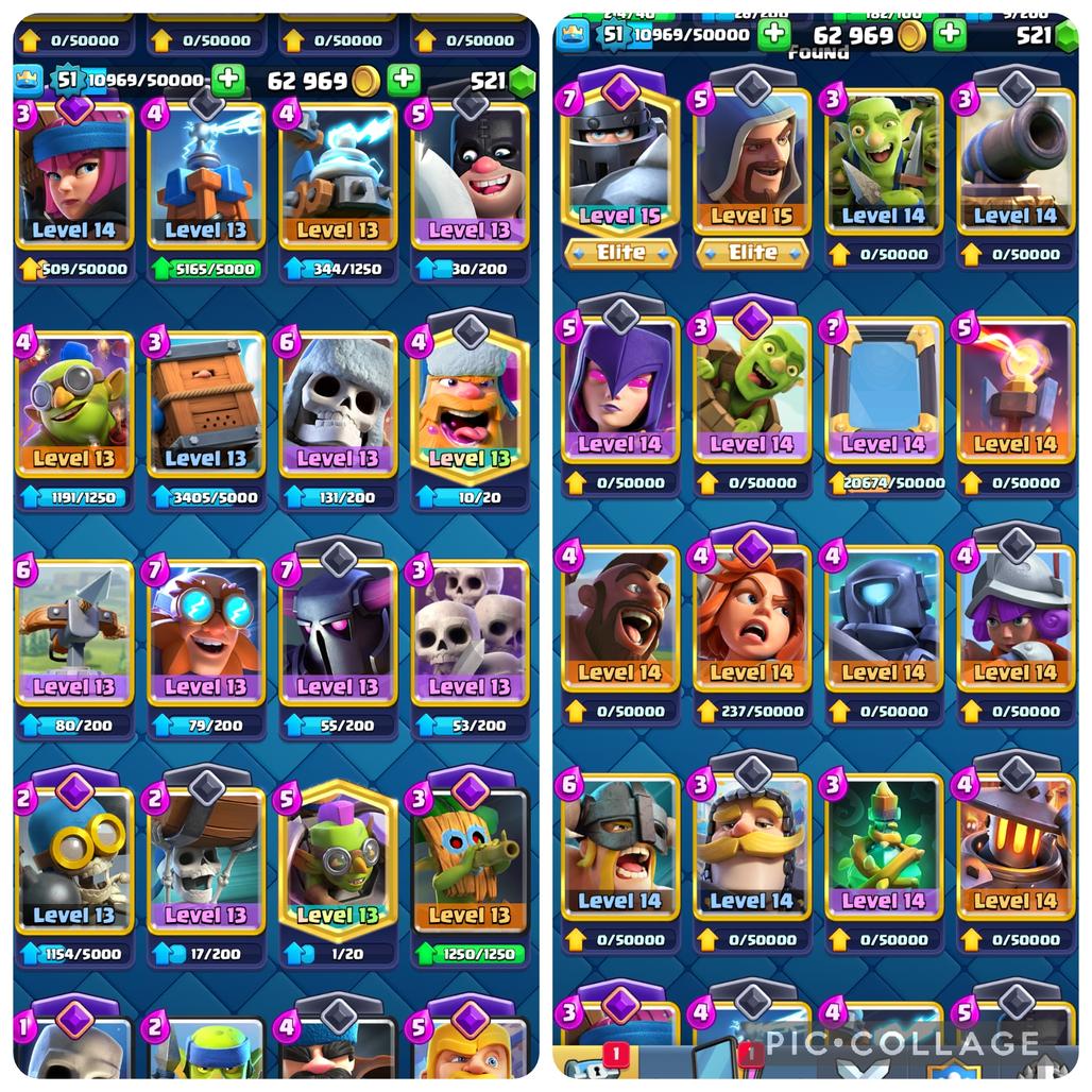 []💥15 CARD MAX💥[] TROPHY-8127 [] 9 EVO-- 3 ELITE [] 70 EMOTE [] LEVEL--51 [] KING TOWER--14 [] RENAME AVAILABLE []