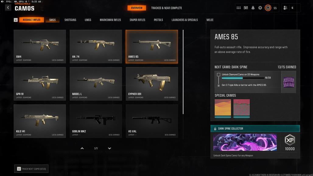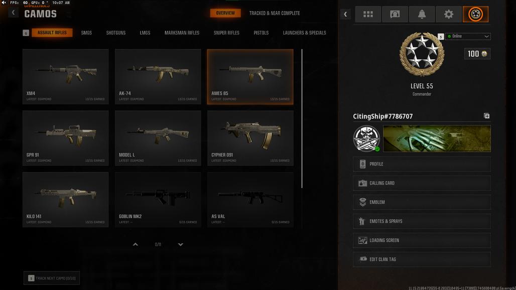 18 DIAMOND CAMO | 8 AR | 7 SMG | 3 SNIPER | 40 WEAPON UNLOCKED | LEVEL 55 | 17 OPERATORS | LINKABLE TO ALL PLATFORMS