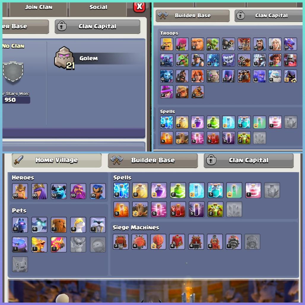 290|| LVL-205! TH-16! NC AVL! EPIC RS 21L! FB 20L! LP 18L! GG 17L! SB 14L! MM 11L! HEROES-80|80|53|55|35| STRONG DEFENCE