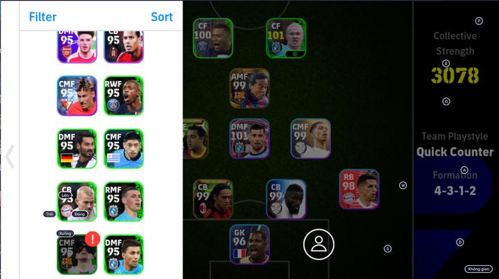 3078 Strength/ Showtime( Rodri,Bruno)-Legendary(Ronaldinho, Del Piero, Scholes, Ferrer, Lizarazu, Given, Cole)-Epic(Xavi, Nesta, Law, Maradona, Ochoa, Denilson)-POTW(Mbappe, Haaland, Messi, Dembele,Foden, Rodri, Gavi, Firmino, Mane, Gundogan, Barella, Muller, ........)-Many Highlight(Rudiger, Cancelo, Jesus, Dybala,