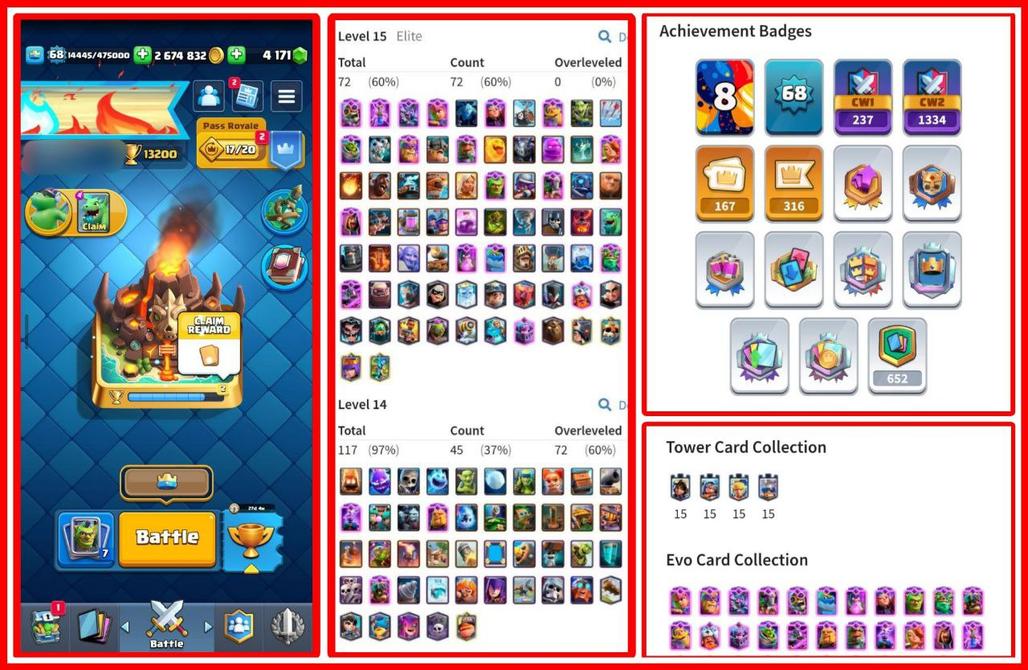 âïž (CHEAPEST) ð 72 ELITE CARDS ð 13200 TROPHIES ð 68 XP ð¯ 22 EVOLUTIONS ð ULTIMATE CHAMPION ðª FULLY MAXED âïž TOP GLOBAL DECKS MAXED OUT ð¥ RARE S1 FIGHTING FISH ð EMPEROR KING ð BOMBERLOON ð£ ROYAL GIANT âšïž LAUGHING HOG ð° GOLDEN PRINCE ð 13 TOWER SKINS ð 8 YEARS PLAYED ð RENAME AVAILABLE â ïž INSTANT DELIVERY ð