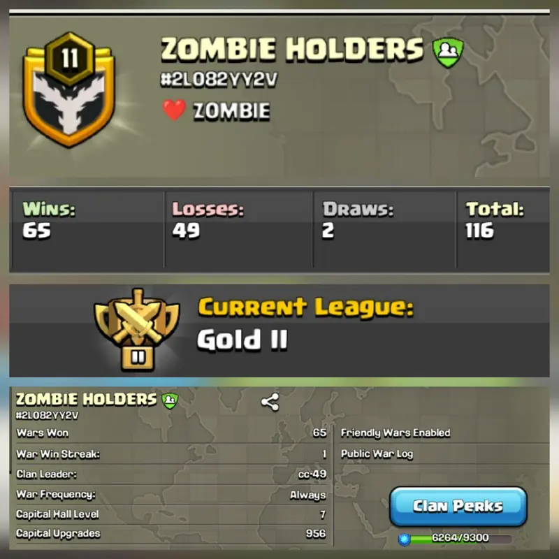LVL-11 || NAME- ZOMBIE HOLDERS || GOLD 2 || CC-7 || WARLOG- POSITIVE