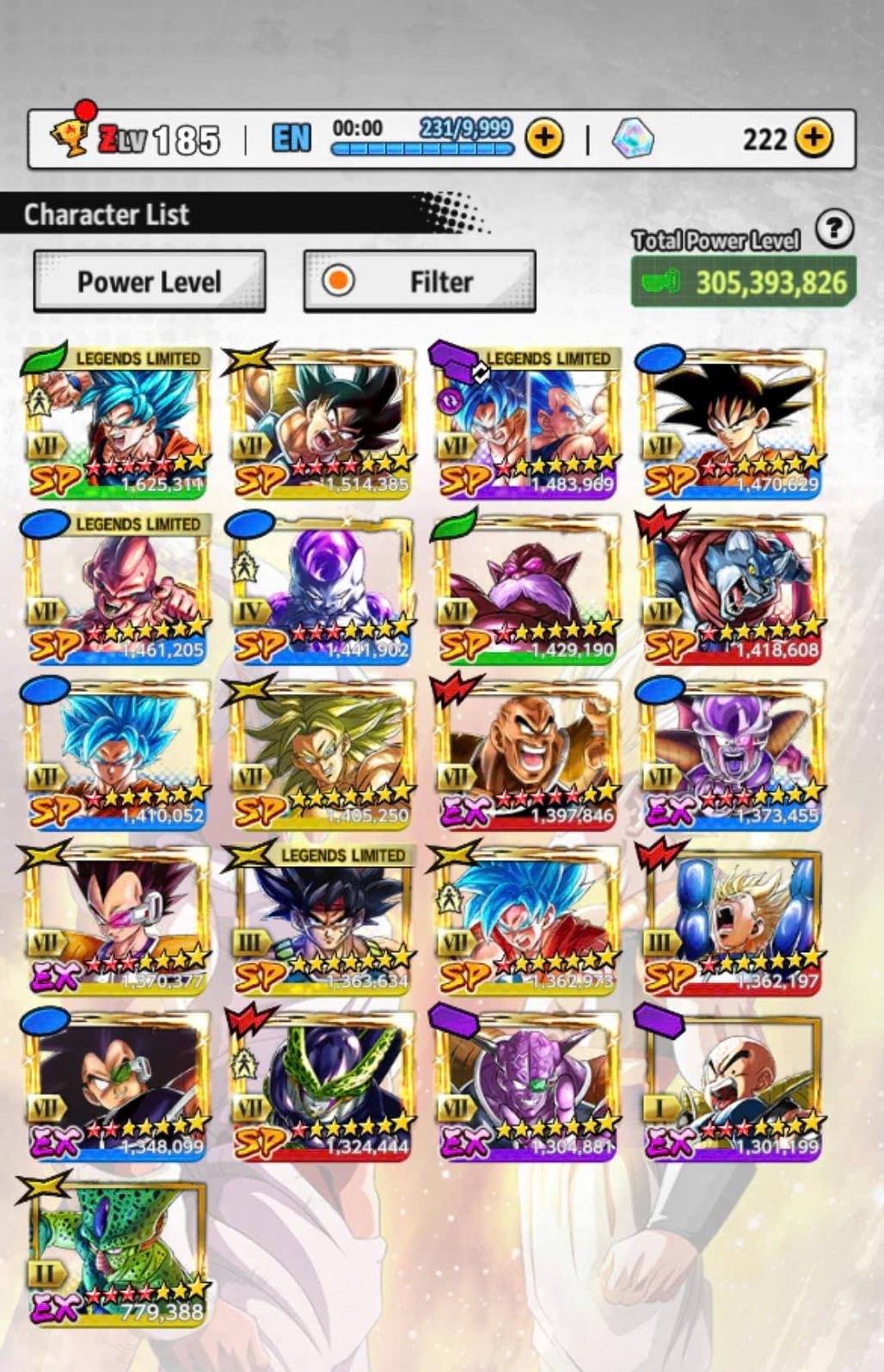 D626-IOS+Android-5 UL(Goku Uis+Hit)+305 Millions Power+36 Legends Limited+Vip Equipment+Nice Team For PVP+Good Zenkai+New LL Goku Uis Full Red Star+Gotenks+Broly+Zamasu v2+Super 17+Goku Black