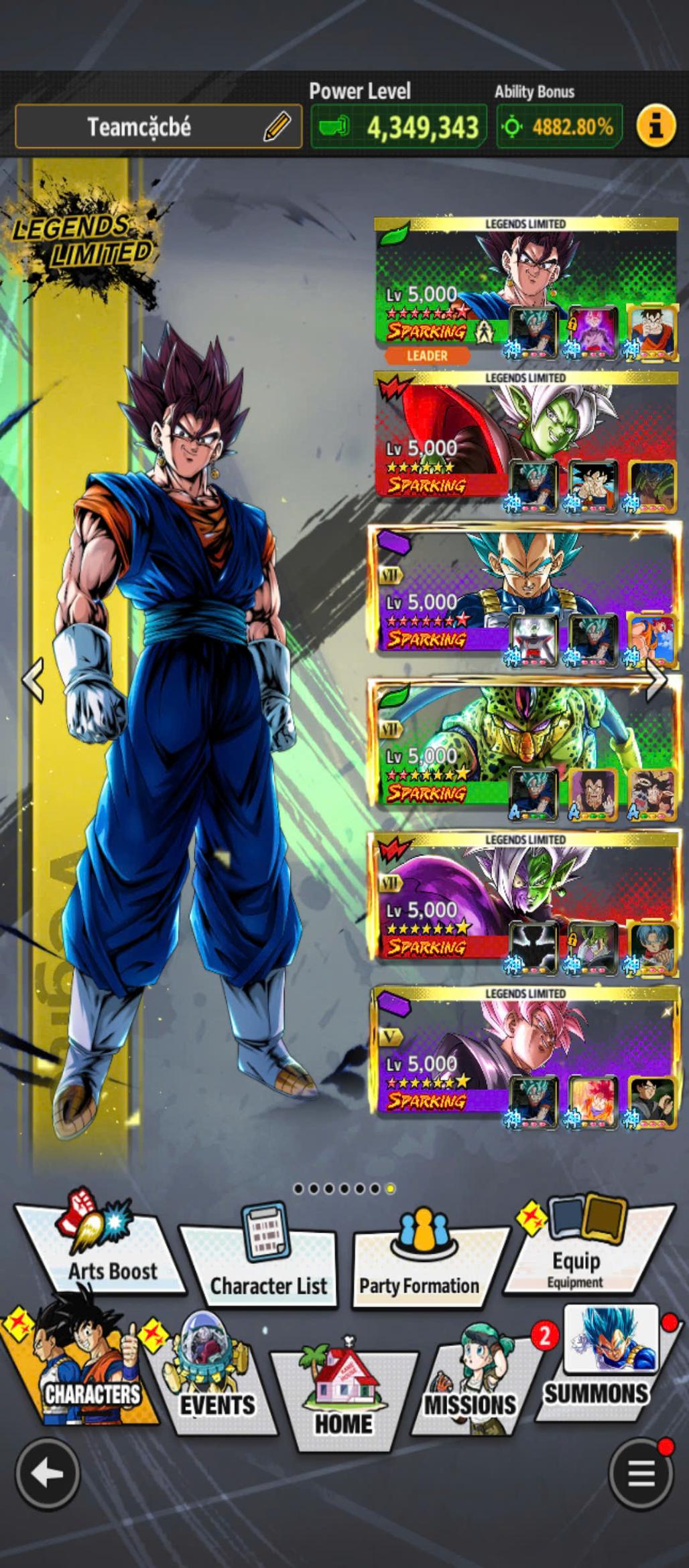 D413-Team Fusion+Daima-5 UL(Beast Gohan+SS4 Gogeta+Super Gogeta)+Vip Equipment+51 Legends High Star+Good Zenkai+Vegito