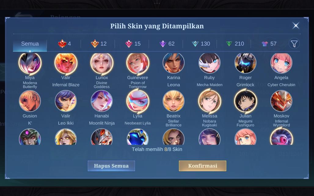 - SKIN LEGEND : Lunox, Miya, Valir, Guinevere