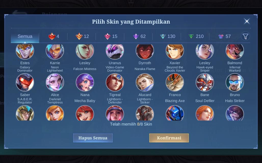 - Skin Collector : Natalia, Dyrroth, Lesley, Cyclops
