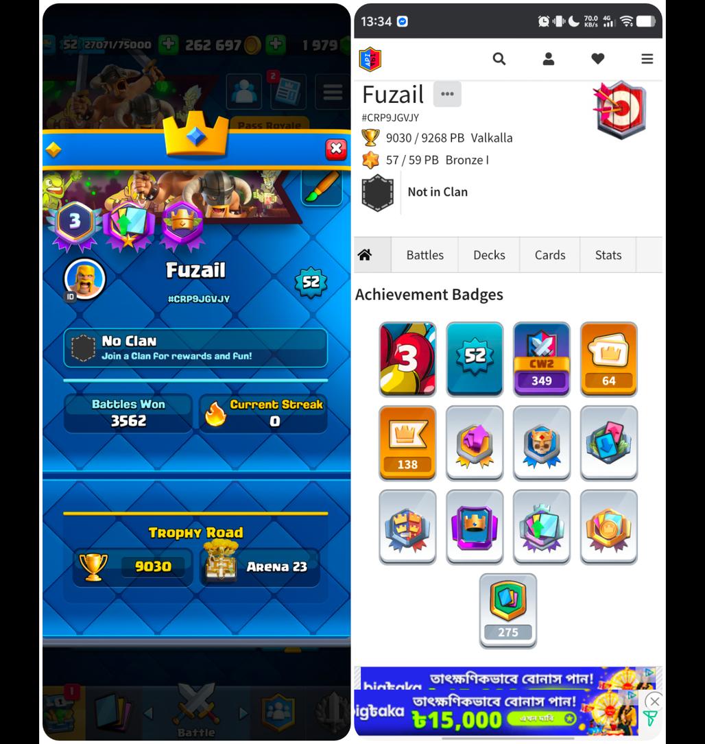 BEST CR ACCOUNT || 52 xP || 8 evo - 4 Elite - 25 max card || 9000+ TROPHY || KT 14 || ARENA 23 || CHEAP- FRESH - SAFE
