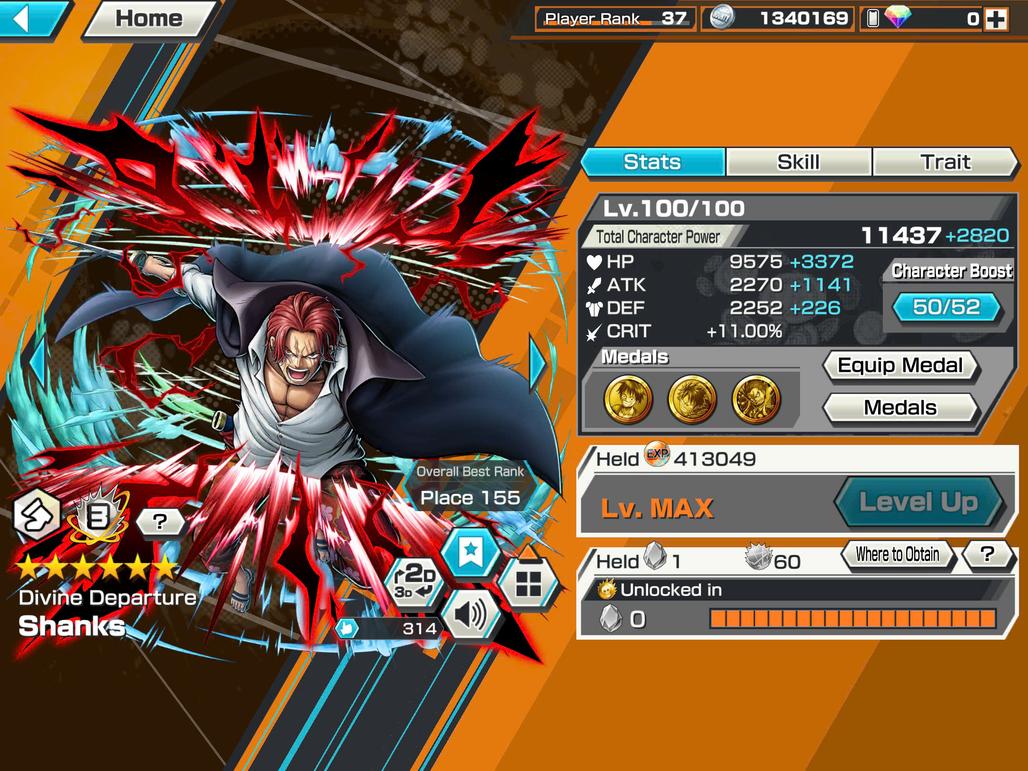BR491-IOS+Android-Shank v4 Boost 3 50/52+5 Ex(Sabo+Kaido v2+Shank v3+Black Beard)+Support 155%+Good Medal+Broggy Max+King Max+Yasopp Max+Ben Max+Buggy Max+313 Fragment
