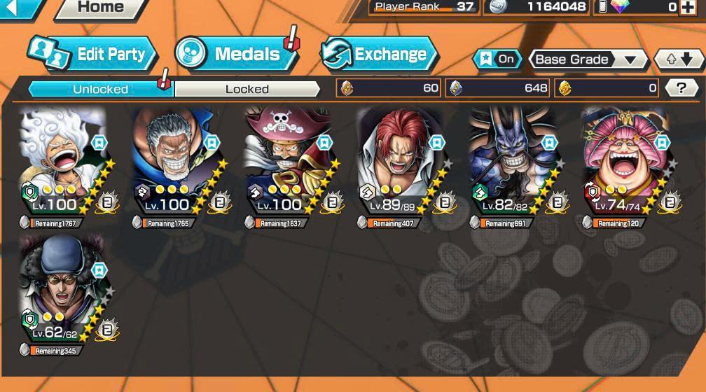 BR599-IOS+Android-7 Ex(Garp+Luffy Gear 5+Shank v4+Kuzan+Roger v2+Kaido+Big Mom)+Good Medal+Support 148%+Kaku+Egghead Luffy+Egghead Zoro+Egghead Sanji+Law oni+Koby+Queen v2