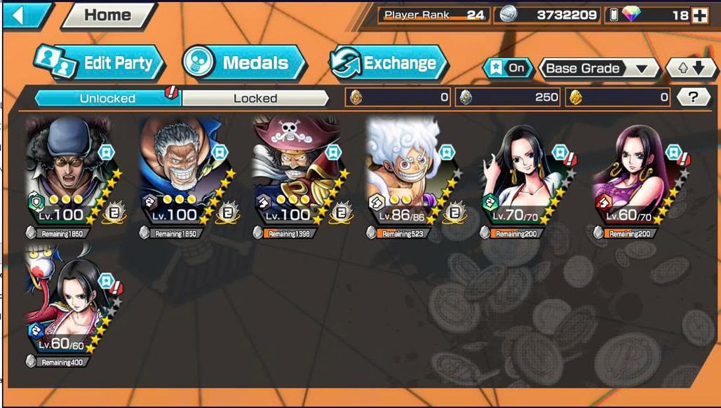BR606-IOS+Android-4 Ex Meta(Luffy Gear 5 v2+Garp+Roger v2+Kuzan)+Good Medal+Support 142%+Law Max+Rayleigh Max+Katakuri Max+Shark+Oden v2+Amaraki v2+Shiryu v2+Egghead Luffy+Sentomaru v2+Issho+Alber
