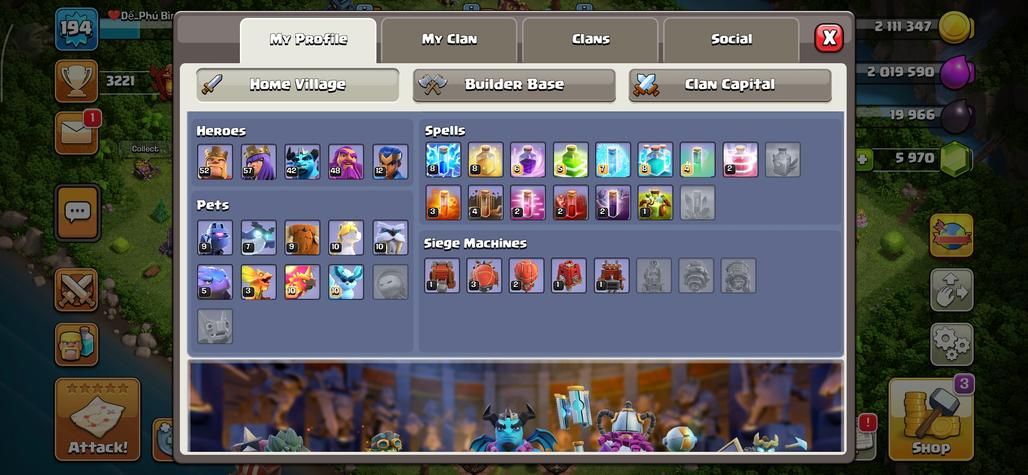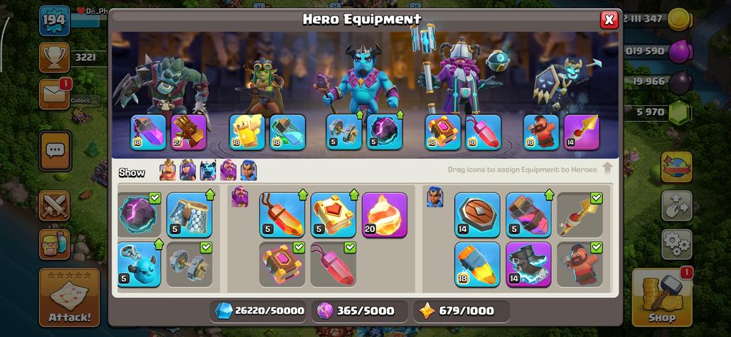 CHEAP DONATION | TH 17 MAX | 6K GEMS 822 MEDEL | HERO [ 52-57-42-48-12 ] GG-MAX FB-20 EB-14 RS-14 STARRY ORE-679 XP-194