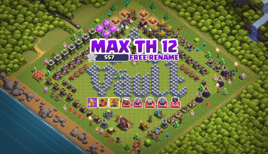 MAX TH 12 - FREE RENAME - 3 HERO SKINS - MANY MAGIC ITEMS - PIXEL SCENERY - SAFE AND INSTANT DELIVERY