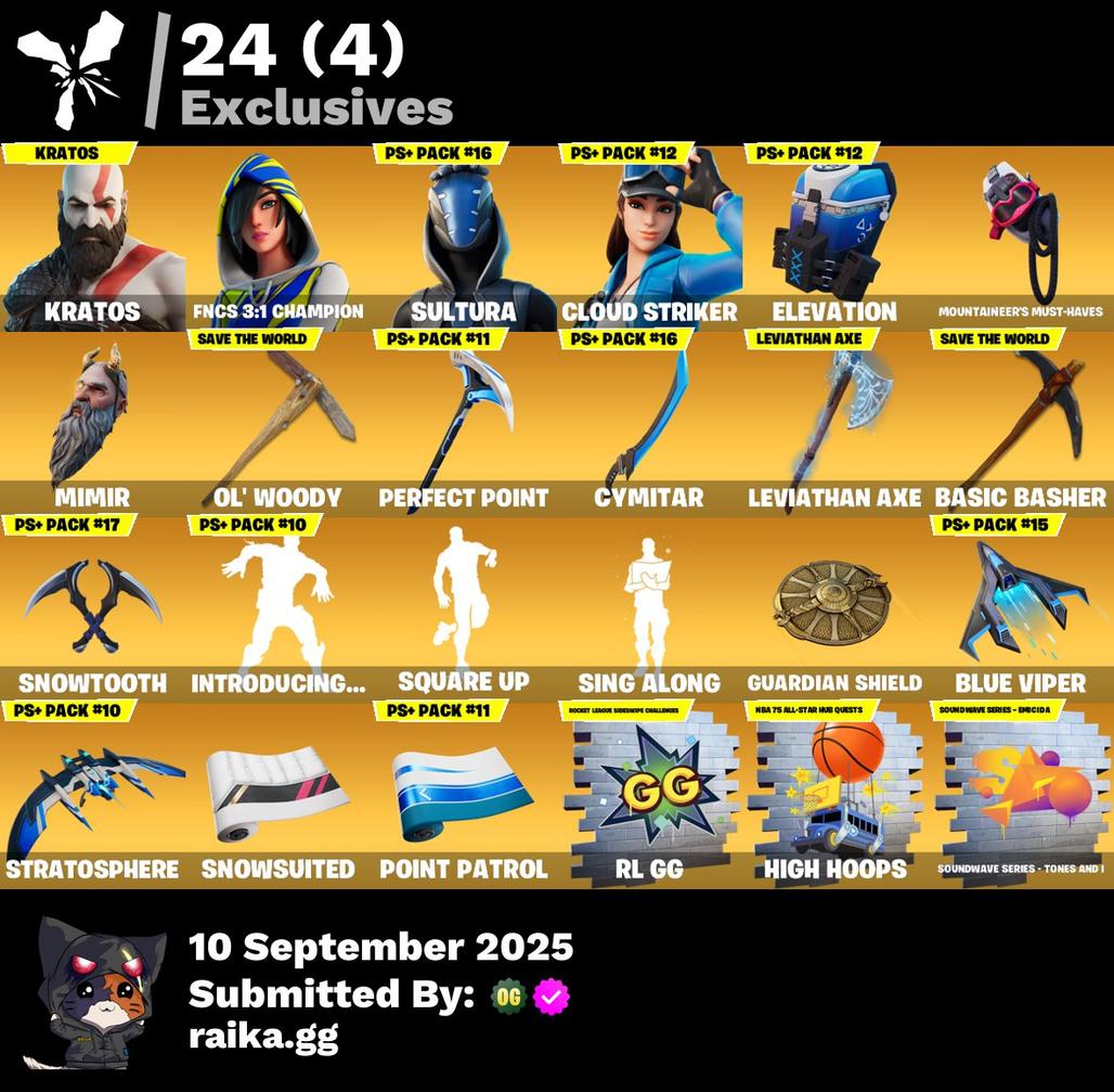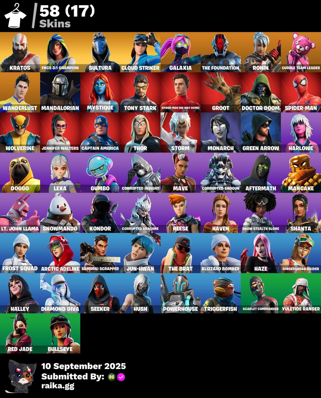 PC/PSN/Xbox/Nintendo 58 skins | Leviathan Axe | Kratos | FNCS 3:1 Champion | Sultura | Cloud Striker | Galaxia | The Fou