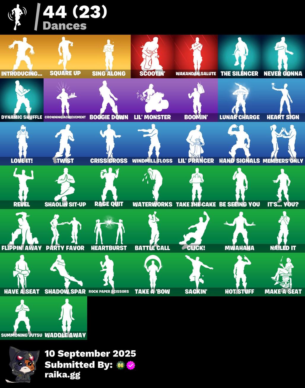 Never GonnaThe SilencerDynamic ShuffleWakandan SaluteScootin'