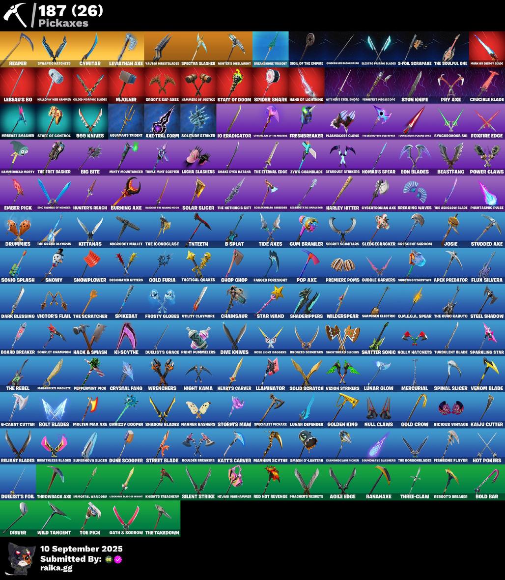 Leviathan AxeReaperMrBeast SmasherStaff of Control999 Knives