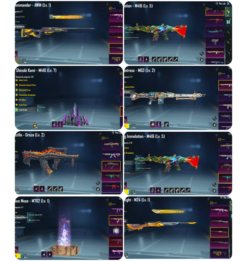 M24 pharow - awm - uzi - s12k - m762 dbs many moree skin level 1 total 22 GUN LAB 🔴⚡💥