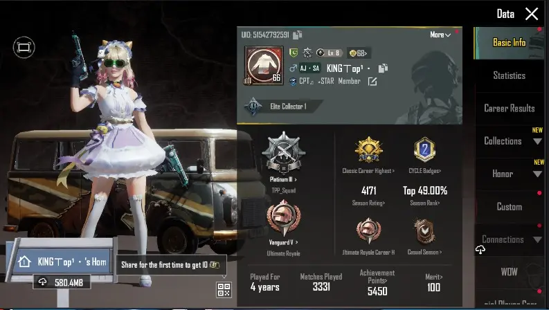 PUBG Mobile Account | Level 66 | ð« M4A1 (Lv.3) | 50+ Skins | ð° 675 UC | Full Access