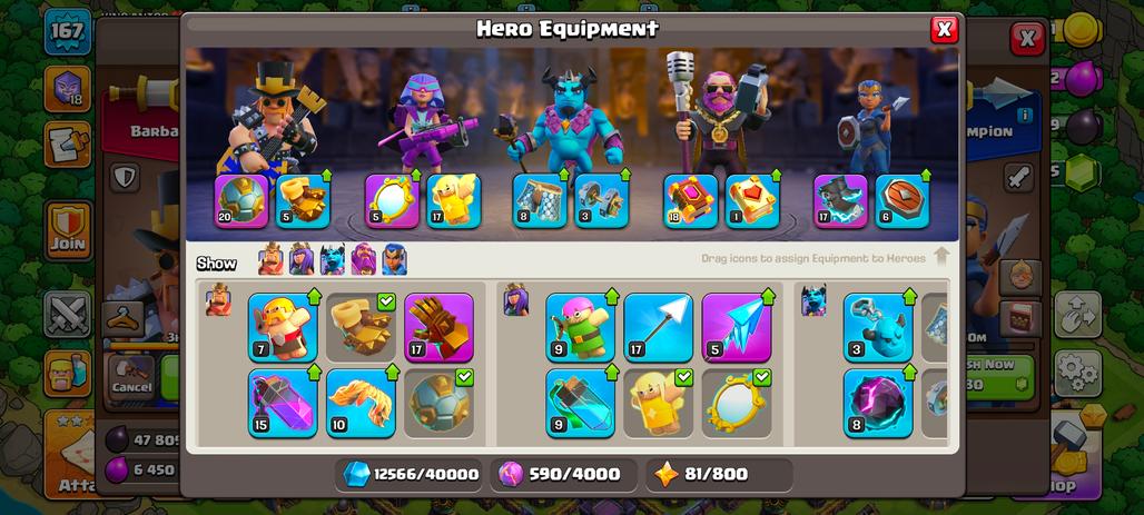 TH 15 PREMIUM ACCOUNT | BK 80 AQ 80 GW 60 MP 50 RC 30 | LOTS OF HEROES SKINS AND MAGIC ITEMS AVAILABLE |