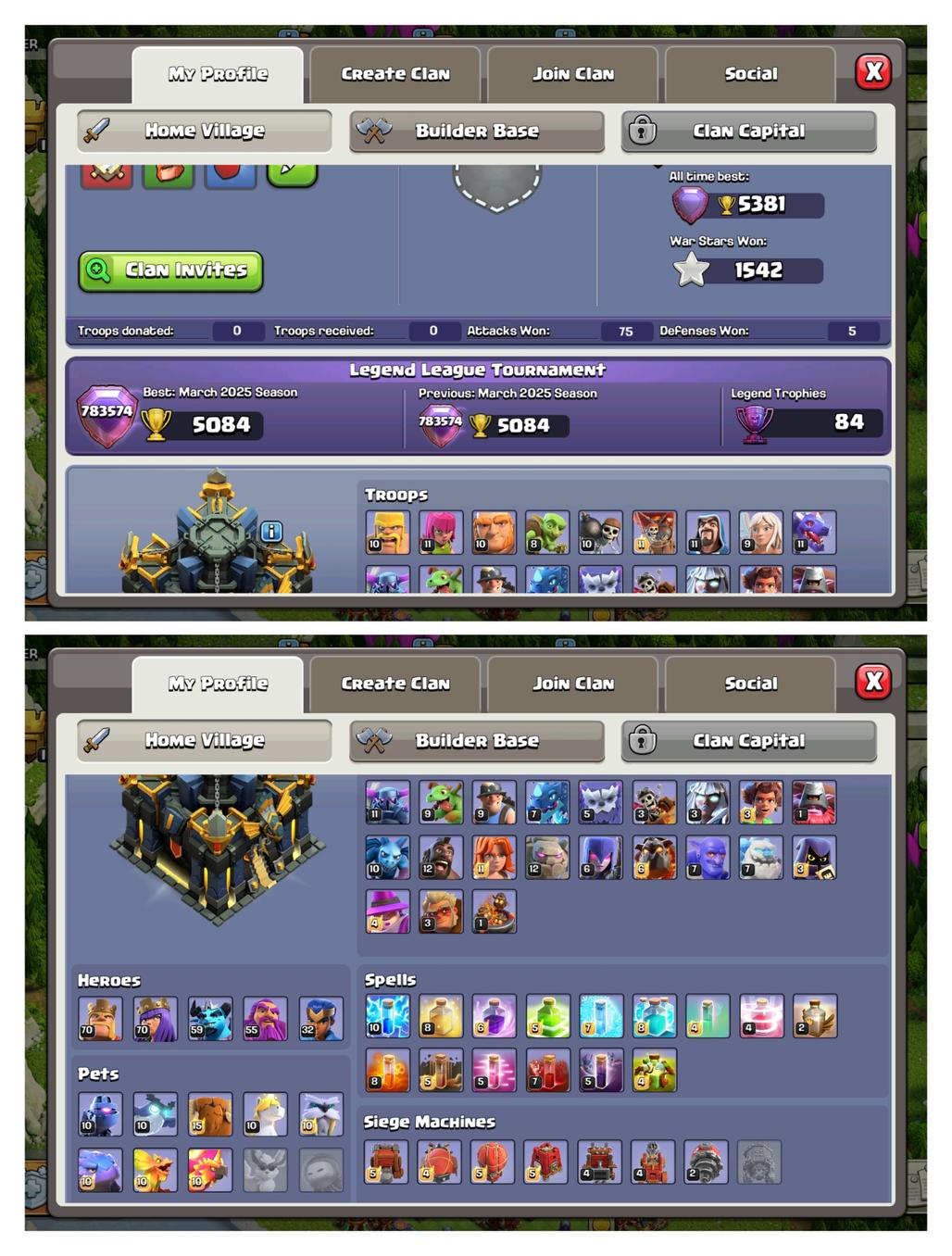 TH 17 Near Max | 2x Epic Max (S.Bracelet & M.Mirror Max) 4x Epic (8x Equipment Max) 8x Pet's & Lab Almost Max | Instant