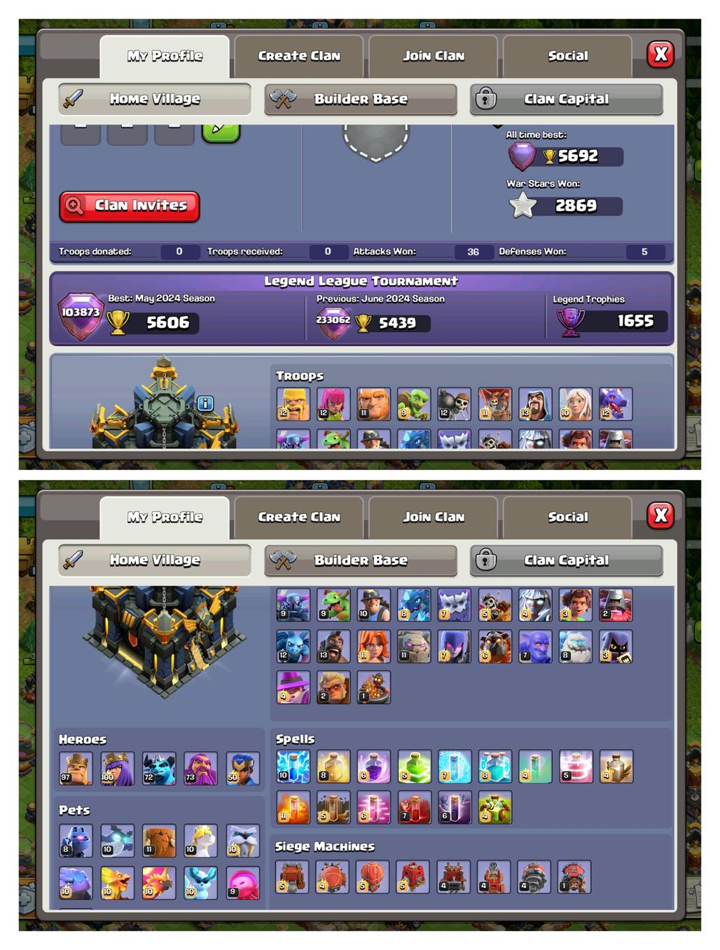 TH 17 Near Max | 3x Epic Max [ S.B-F.A-E.B ] 4x Heroes Max | 7x Epic [G.G-23 M.M-23 F.B-20 R.S-20] Instant Delivery