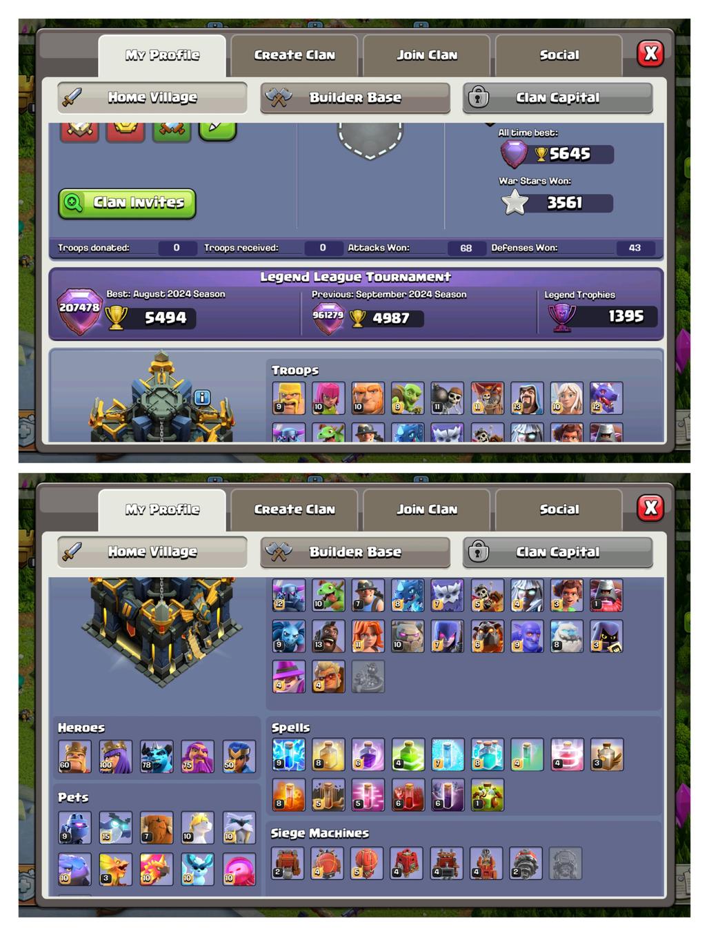 🔥TH 17 Near Max 🔥3x Heroes Max | 10x Epic Equipment (23-17-14-23-27-5-5-14-20-20) 9x Skin's| Rename Available! Instant