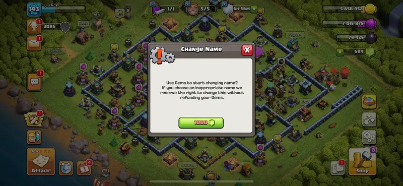 TOWNHALL 14 [] 59-75-45-46-15 HEROES [] RENAME 1000 [] AVAILABLE