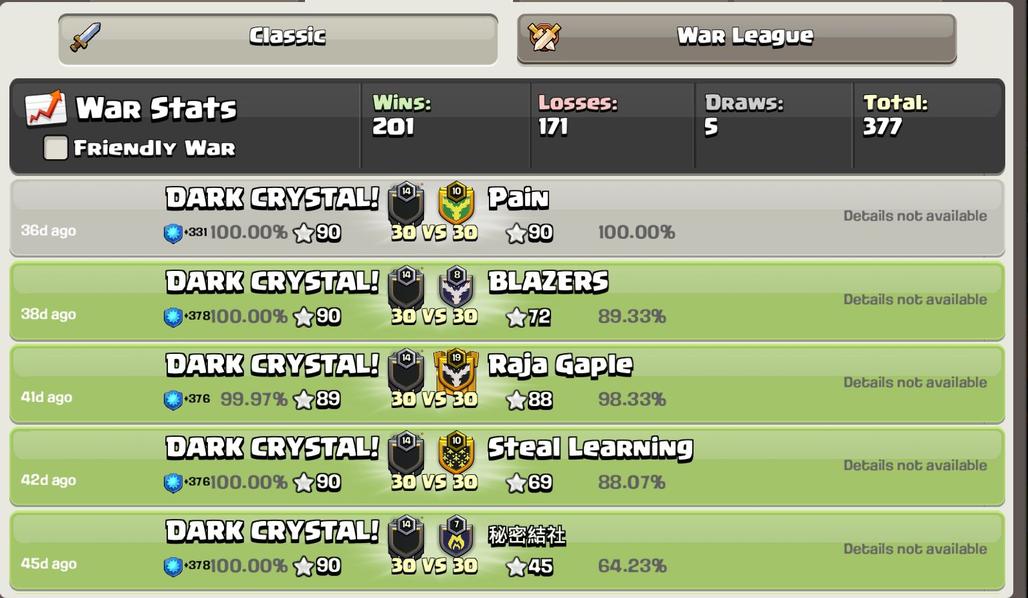 CAPITAL HALL 10 ( 2758 upgardes) | Clan Level 14.9 | Name : DARK CRYSTAL! | Wins 201 Losses 171 | Gold 1
