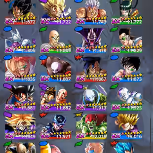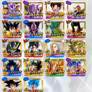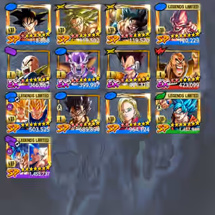 Team Daima+7 UL(Rose Goku+Majin Vegeta 8S+Cell 8S+Turles 8S+3 UL Full) 39 Legends+ Zenkais 25+ Godly Equip 30+ (947)