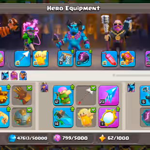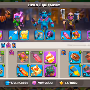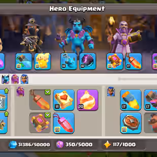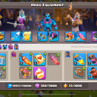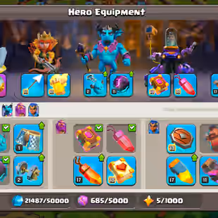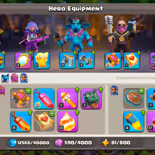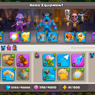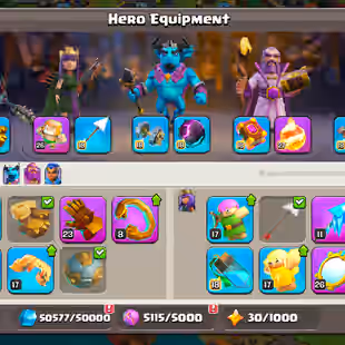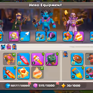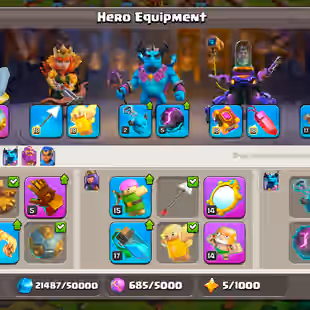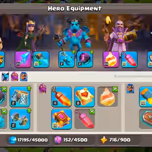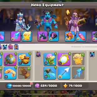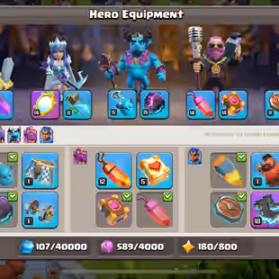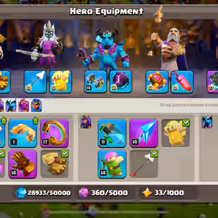 3 HERO MAX TH17 ACCOUNT | AQ 100 BK 83 MP 71 GW 75 RC 50 | GOOD HERO EQUIPMENT | 6 LEGENDARY HERO SKIN 2641 WAR STAR