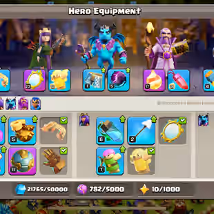 TH 16 PREMIUM ACCOUNT | AQ 65 BK 59 MP44 GW 47 RC 30 | LOTS OF HEROES SKIN & MAGIC ITEMS AVAILABLE | IOS AND ANDROID