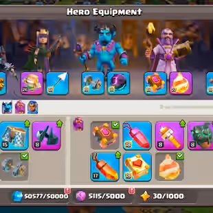 TH 15 PREMIUM ACCOUNT | HIGH LEVEL HEROES BK 71 AQ 80 MP 51 GW 55 RC 30 | HERO SKINS AVAILABLE | IOS AND ANDROID |